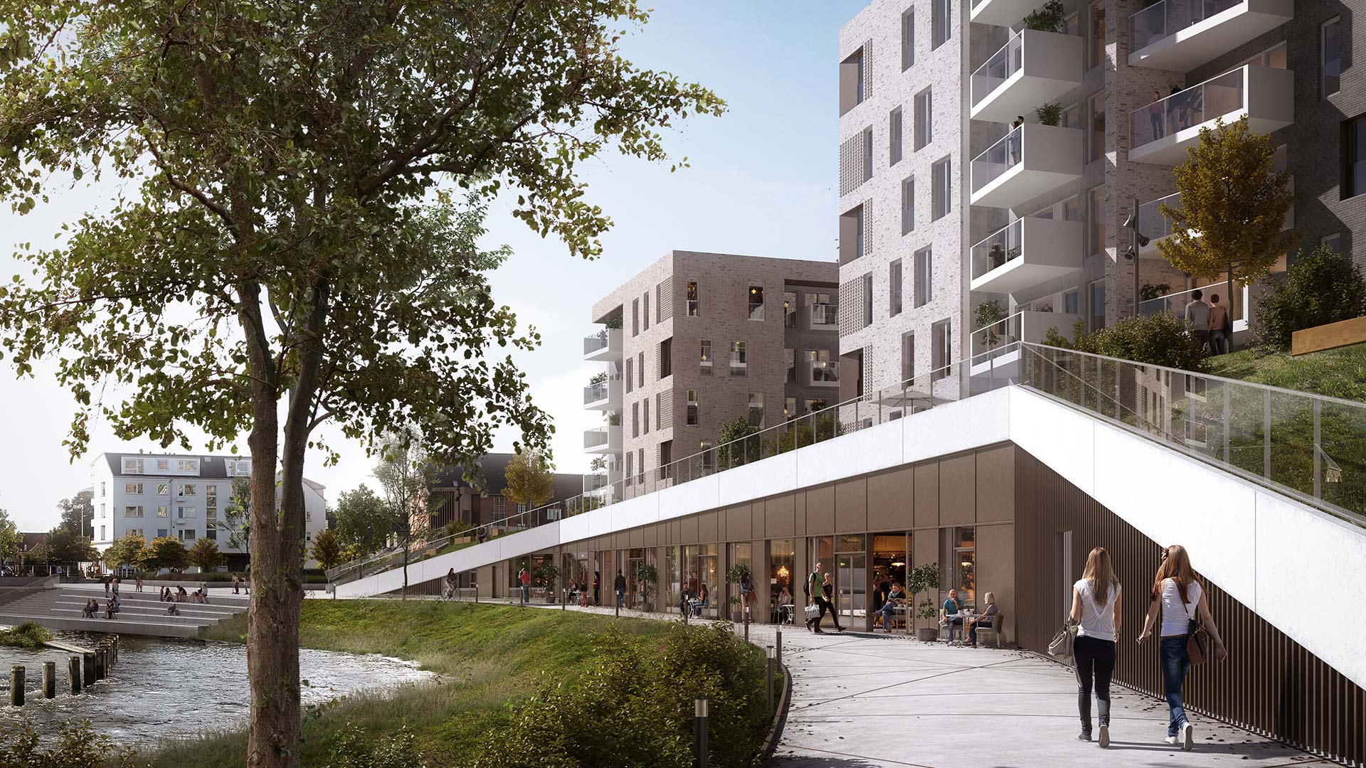 Uanset om du køber eller lejer en lejlighed på Søtorvet, får du byens bedste beliggenhed med i pakken. Nyd morgenkaffen på en af de mange caféer langs åen, eller gå til torvemarked på kun 5 minutter. Snart flytter butikkerne helt ind for foden af de nye bytårne, og bringer endnu mere liv til det centrale område.